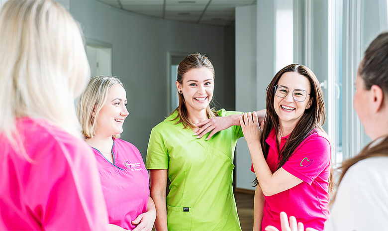 Ob Zahnmediziner (m/w/d) oder zahnmedizinische Fachkraft (m/w/d) – unser herzliches Fachpersonal sucht motivierte, nette sowie kompetente Mitarbeiterinnen und Mitarbeiter. Eine gesunde Work-Life-Balance, eine faire Vergütung und starker Teamgeist sind nur einige der Grundsätze, die unsere Praxisphilosophie prägen.